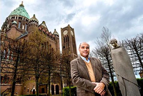 Foto rechts: documentairemaker Boni Li-A-Sam voor de Sint Bavo Basiliek in Haarlem.