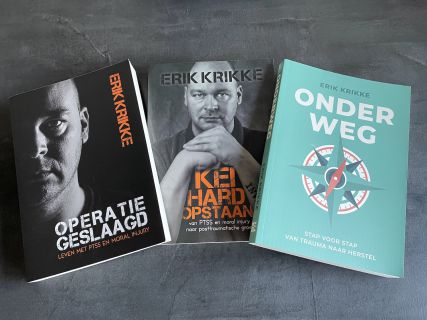 De titels van de andere boeken van Erik Krikke zijn: 'Onderweg', 'Keihard Opstaan' en een Boekenbundel. Meer informatie op de website erik-krikke.nl